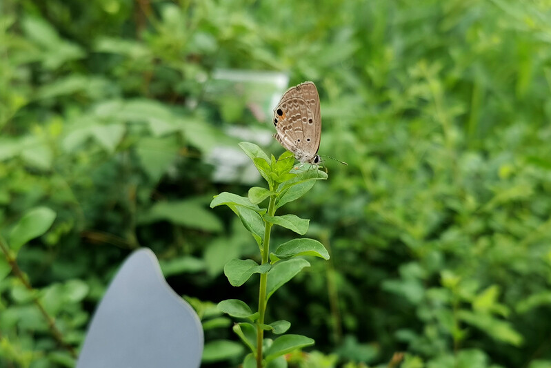 长宁区中泾生境花园内的曲纹紫灰蝶,据介绍,从种下“对口”的植物到出现蝴蝶,只隔了个把月。 陈玺撼摄
